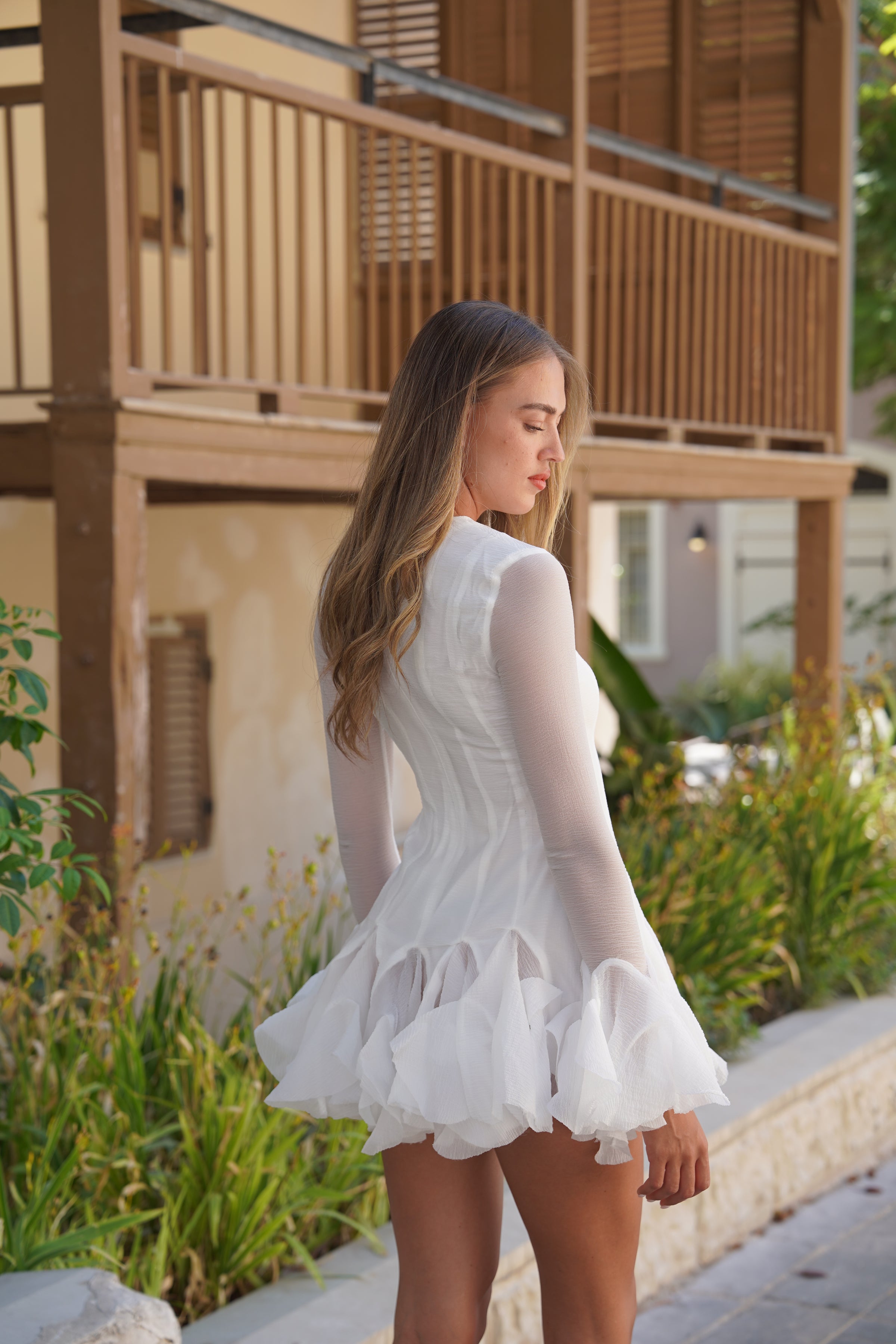 שמלת מיני לבנה עם שרוולים נפוחים