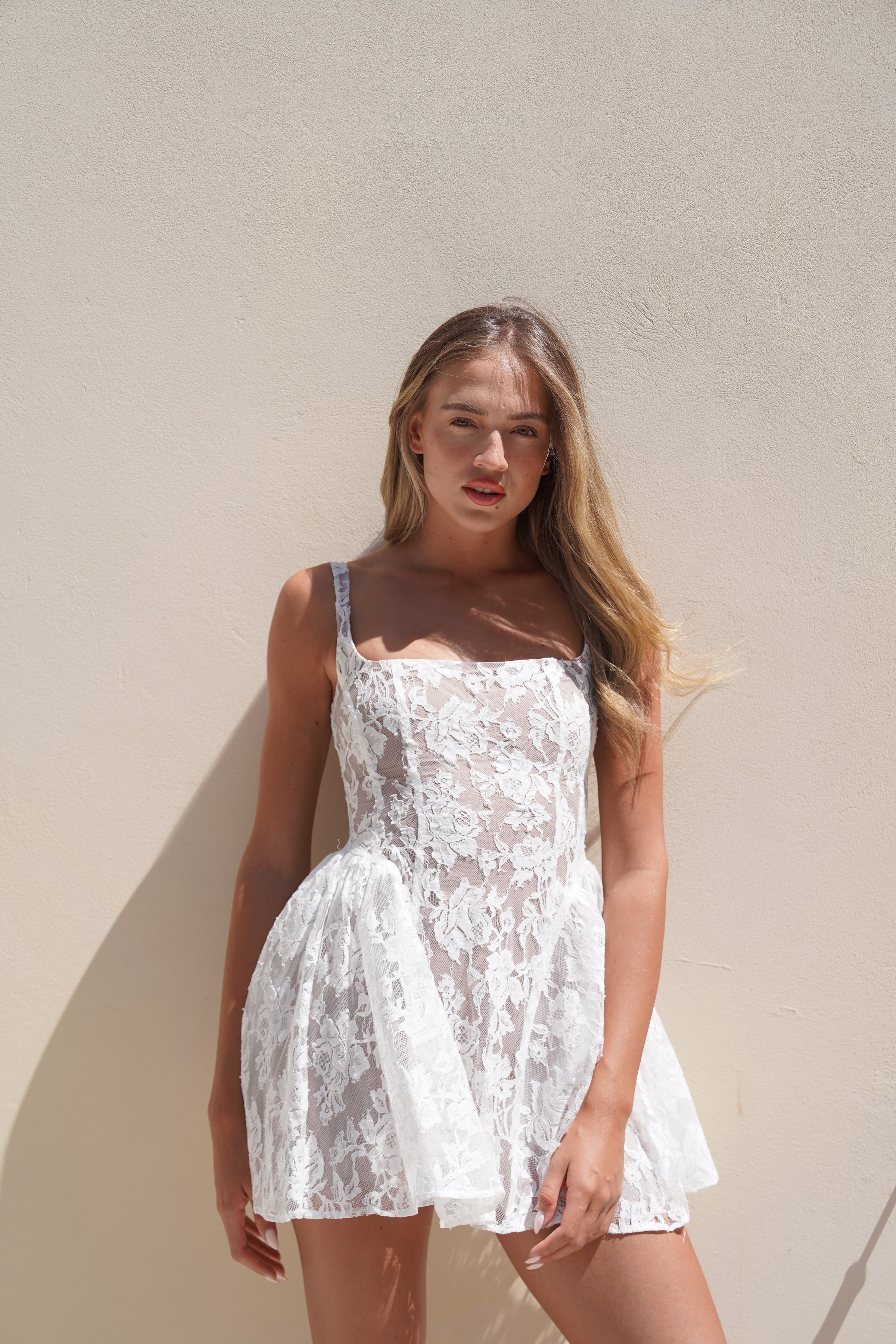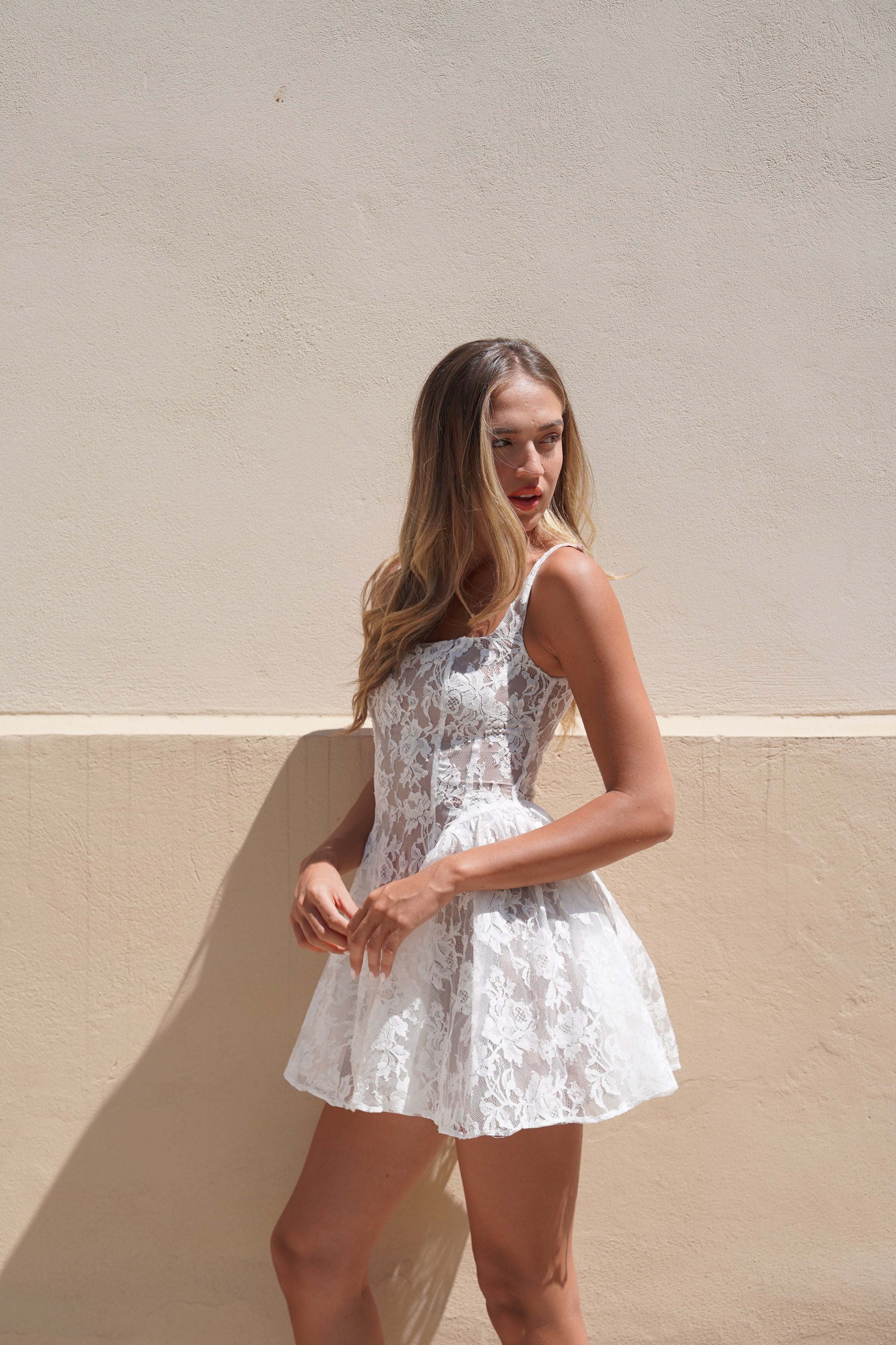 שמלת מיני תחרה בצבע לבן